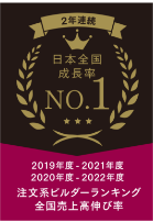 選ばれました日本全国35,000社あると言われる住宅会社の中で、直近5年における売上高伸び率No.1に選ばれました。(※住宅産業研究所調べ)